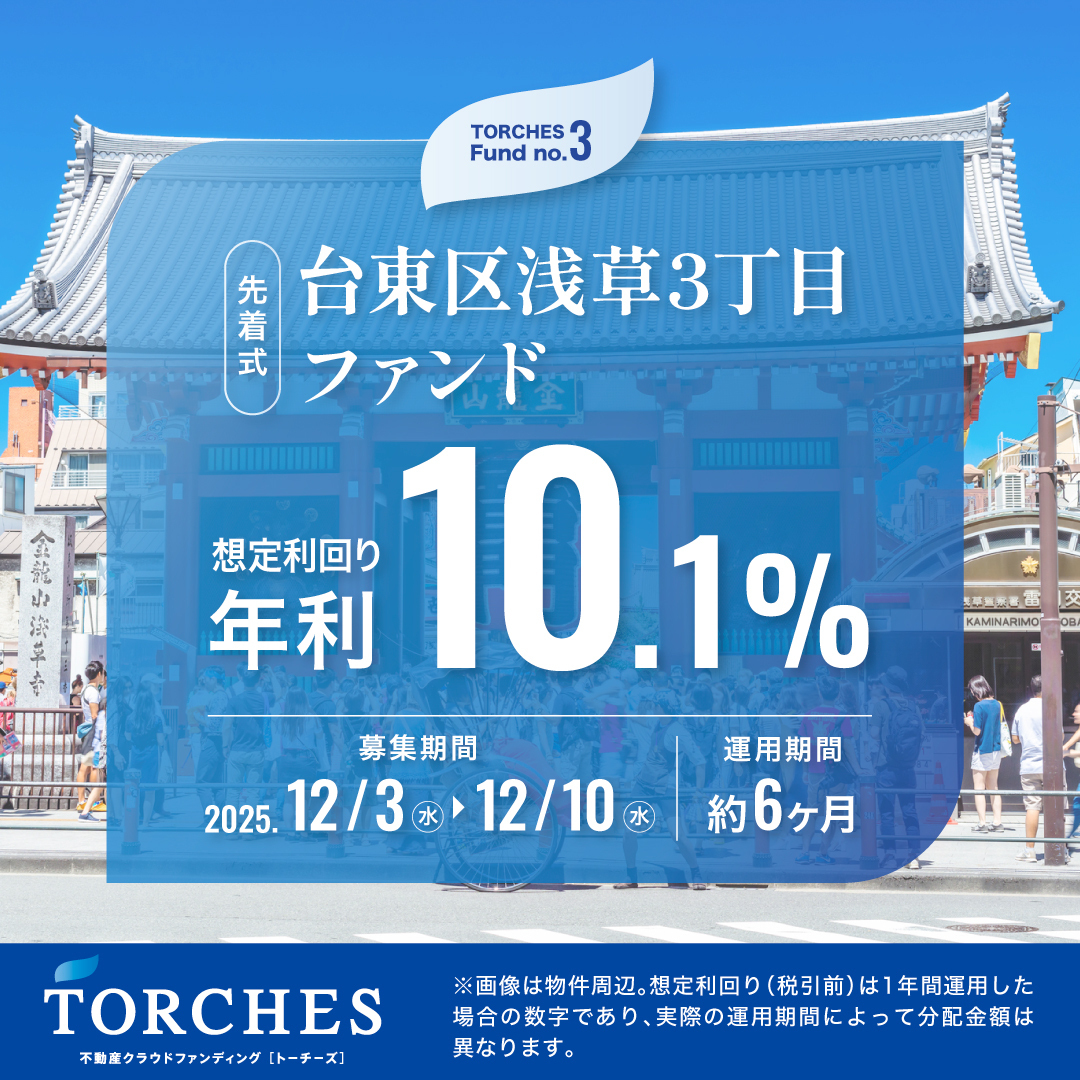 本日 2025年12月3日(水) 12:00~、第3号ファンドとなる【台東区浅草3丁目ファンド】を募集開始しました!