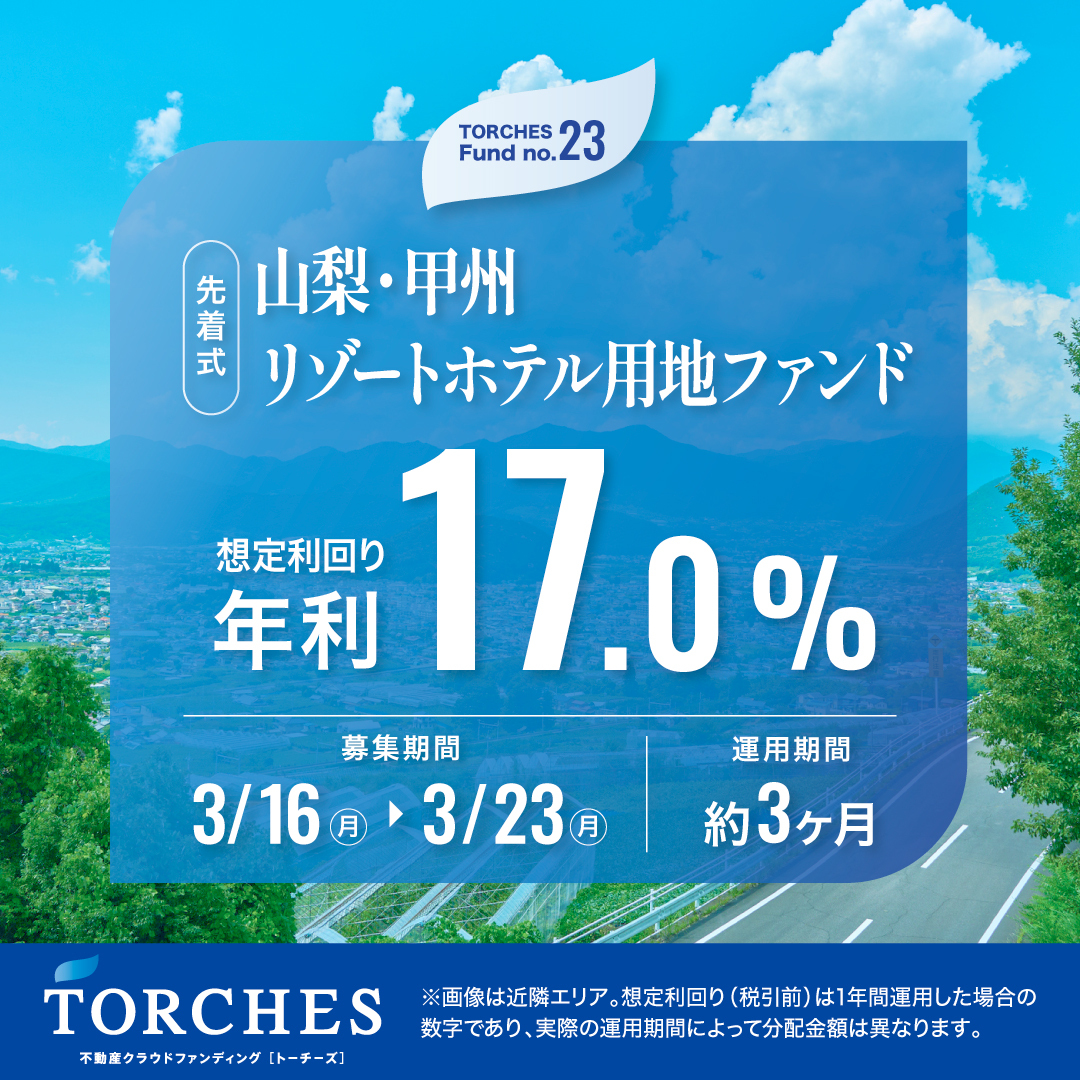 この度、【No.23 山梨・甲州リゾートホテル用地ファンド】を募集開始しました。
