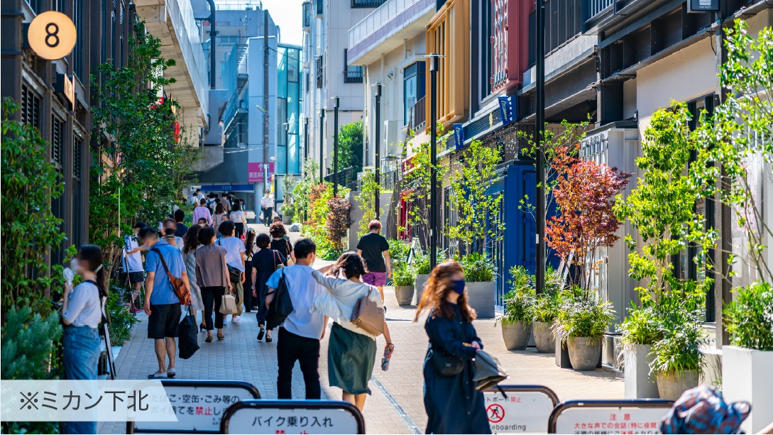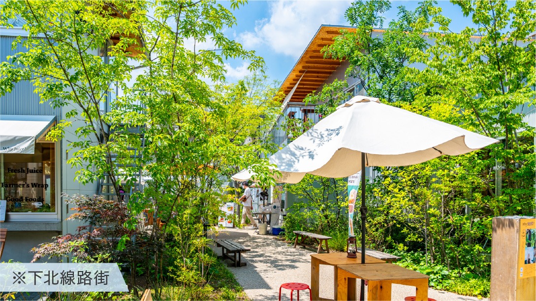 世田谷代田駅周辺では、小田急線の連続立体交差事業に伴い、線路跡地を活用した「下北線路街」の整備が進められてきました※1。「世田谷代田駅」から「東北沢駅」までの約1.7kmにわたるエリアには、商業施設や複合施設、コミュニティスペースがあります。「BONUS TRACK」をはじめとする施設は、地域住民や来訪者が交流できる場としてイベントや展示が開催されています。