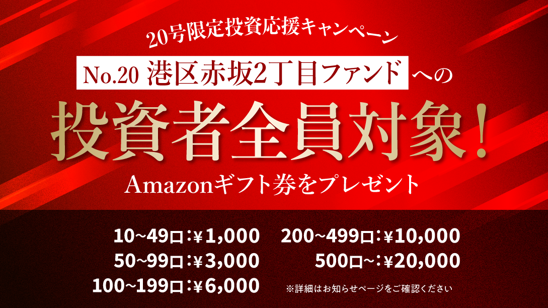 本ファンドの投資対象は港区赤坂2丁目にあるタワーレジデンスの42階の1室(以下、本物件といいます)で、専有部分の床面積は108.33㎡です。TORCHESが本物件を取得し、運用した後に売却を予定しています。会員の皆様からは、本物件の取得費用等を募集します。投資額に応じて本物件の売却益の一部を分配する予定です。